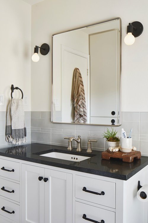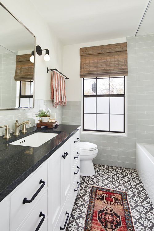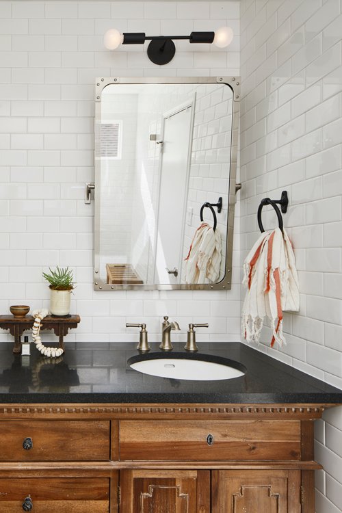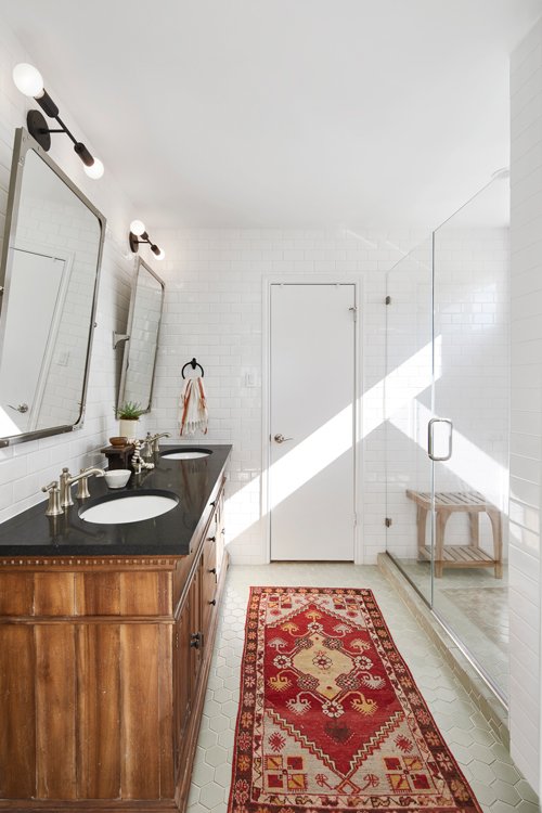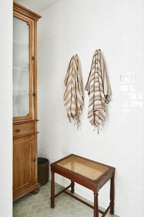 Three severely outdated bathrooms were overhauled for a creative client whose vintage collections inspired bright and quirky design touches, linked thoughtfully to the rest of the home.