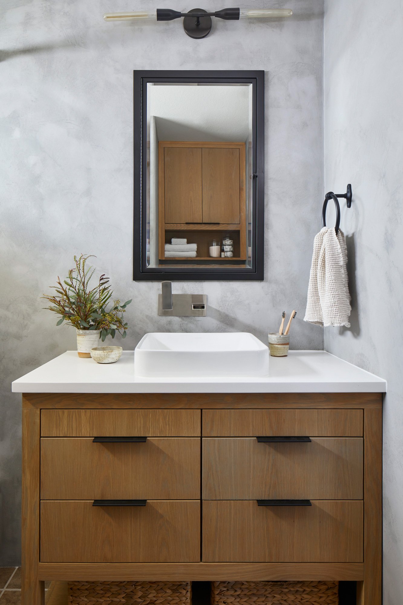 A preexisting tract home finds calmness, creativity and brightness in a revitalized master bathroom, closet and guest bathroom remodel.